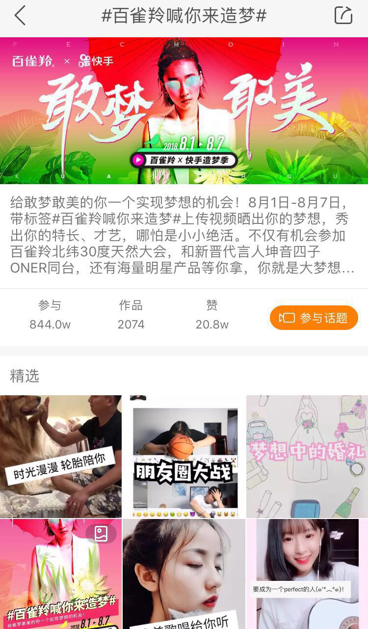 百雀羚x快手造夢季,見證全民的千萬種夢想