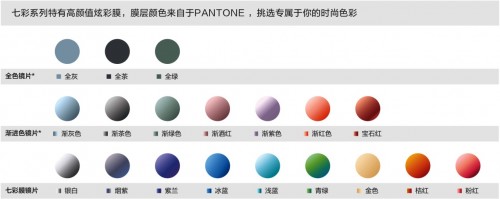明月鏡片今年主推的七彩近視太陽鏡片,擁有全色鏡片、漸進(jìn)色鏡片、七彩膜鏡片三種系列,特有高顏值七彩膜,膜層顏色和我們每年服裝的流行色一樣,來自于全球色彩權(quán)威機(jī)構(gòu)潘通(PANTONE)。