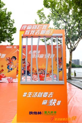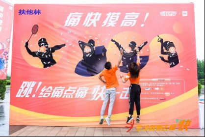 在整個5公路跑程中,不僅有水槍激戰、歡樂海洋球、金色草垛等趣味活動,扶他林還特設了“痛快摸高“游戲環節,現場領取“扶他林乳膠劑”貼紙,面對背景板,立定跳高,將貼紙穩!準!狠!的貼到背景板指定“痛點”處,即可獲得扶他林“痛快達人”認證。小互動、小禮品、自拍等都是現場活動的高頻場景。