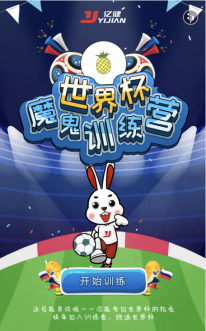 在世界杯的借勢傳播上,億健針對球迷們想親自參與的心理,推出《世界杯魔鬼訓練營》H5,讓球迷朋友也能上場參與其中。