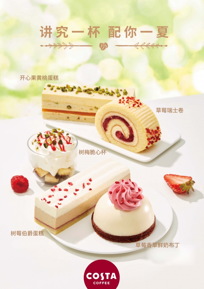 COSTA還在這個夏天將推出多種風味的飲品,配以草莓瑞士卷、樹莓脆心杯、樹莓伯爵蛋糕和草莓香草風味蛋糕等多款夏日新品,打造一個全新的COSTA夏日盛宴。