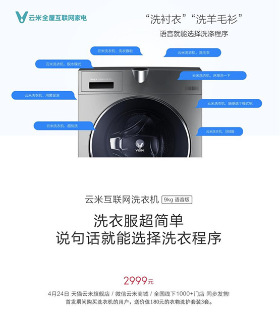 4月24日起,云米互聯網洗衣機將在云米商城、云米天貓旗艦店以及全國線下1000多家門店同步發售,為各個階層的人們開啟洗衣新時代。我們完全有理由相信,通過不斷的探尋與摸索,云米會成為更多用戶心目中的“互聯網家電新坐標”。
