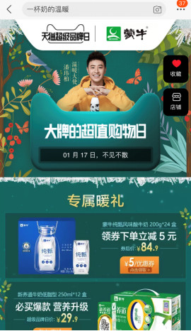 1月17日的蒙牛天貓超級品牌日,作為蒙牛最大的一次基于電商銷售的整合營銷活動,0點上線即引發搶購,活動贈品——牛奶溫暖杯引發超強期待,活動日當天24小時蒙牛阿里站內整體銷售破千萬!