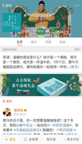 為了將“溫暖”主題得到強力的推進和傳播,蒙牛邀請了潘瑋柏,賦予其“溫暖大使”的身份,無論對概念詮釋、social傳播,還是引流銷售都起到了極大推動作用。讓所有人看到了粉絲經濟2.0時代的驅動力,創造了諸多記錄令人咂舌。