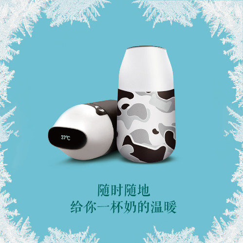 為此,蒙牛電商inhouse創意團隊和電商運營團隊與天貓及小米生態多方醞釀半年時間,專研出了一款功能實用、外觀潮流的產品——“牛奶溫暖杯”,搭配有可操作的電子顯示屏,能實時顯示杯內溫度,在到達37℃這個牛奶適宜飲用溫度時展示“milk”icon提醒,還可以悶燒制作牛奶美食。只等待冬季這個需要溫暖的季節到來。
