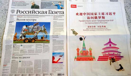 圖:TCL在《俄羅斯報》整版刊發歡迎領導人出訪的品牌廣告