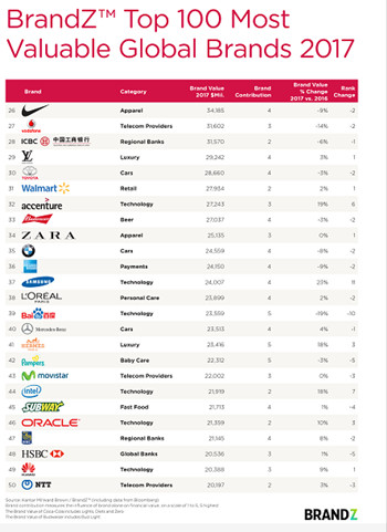 點擊此處獲取BrandZ最具價值全球品牌報告和排行榜,以及更多全球品牌洞察。也可通過BrandZ應用程序找到全球報告、排行榜、圖表、文章等內容,蘋果IOS設備和安卓設備均可免費下載該應用,也可在蘋果iTunes或安卓Google Play應用商店搜索“BrandZ”。