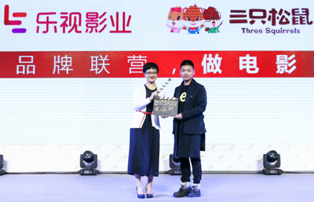此次大會(huì)上,樂(lè)視影業(yè)與三只松鼠聯(lián)合宣布,三只松鼠將成為樂(lè)視影業(yè)首個(gè)品牌制作人。三只松鼠董事、首席品牌官郭廣宇特別談到,三只松鼠影業(yè)成立是松鼠深耕娛樂(lè)內(nèi)容的戰(zhàn)略必然,三只松鼠本質(zhì)上就是一個(gè)天然的IP,第二個(gè)五年松鼠也將立足于IP泛娛樂(lè),不僅是電商休閑零食,基于線下投食店/松鼠小鎮(zhèn)等新布局為消費(fèi)者提供吃喝玩樂(lè)購(gòu)多元化的一站式立體體驗(yàn);在這個(gè)戰(zhàn)略下,未來(lái)會(huì)持續(xù)布局更多元化的娛樂(lè)內(nèi)容,而此次選擇樂(lè)視影業(yè)作為三只松鼠影業(yè)聯(lián)合出品的第一部電影,就是松鼠的創(chuàng)新理念與樂(lè)視影業(yè)首創(chuàng)的品牌聯(lián)營(yíng)模式恰好達(dá)到一致,這解決了傳統(tǒng)電影營(yíng)銷模式的弊病,對(duì)于三只松鼠來(lái)說(shuō),同時(shí)也需要在內(nèi)容領(lǐng)域更資深專業(yè)的合作伙伴共同參與松鼠IP的發(fā)展。樂(lè)視生態(tài)營(yíng)銷全國(guó)策略中心總經(jīng)理李嶸也談到,樂(lè)視把票房分紅開放給合作品牌,符合樂(lè)視一貫生態(tài)共贏的理念與初衷,跨生態(tài)的共振共贏將帶來(lái)更加超乎預(yù)期的結(jié)果,我們也非常期待。最后,多家媒體共同見證了雙方第一次合作簽約儀式。