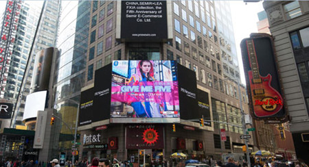 2017年4月,森馬電商推出了第三位時尚合伙人-獨立設計師LEAFXIA并聯合聚劃算開啟歡聚日。活動期間森馬天貓單店銷售額4500萬,森馬電商全公司累計超過1.47億。同時,聚劃算助力森馬時尚合伙人登錄紐約時代廣場,在這個全球最受矚目的頂級品牌秀場,森馬×LEAFXIA聯名系列的亮相,標志著森馬向全世界釋放邁向國際舞臺的信號。