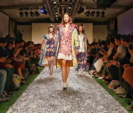 ??4月13日,森馬在上海時裝周GreenCode會場閉幕秀發布五周年特別款collection2.2膠囊系列。該系列設計師LEAFXIA將環保發光面料和熱烈鮮艷的印花運用到服裝設計中,帶來了時尚與科技的碰撞。在時裝周閉幕秀現場,森馬正式聘任LEAFXIA為森馬時尚合伙人,森馬電商總經理邵飛春為LEAFXIA頒發了聘用證書。