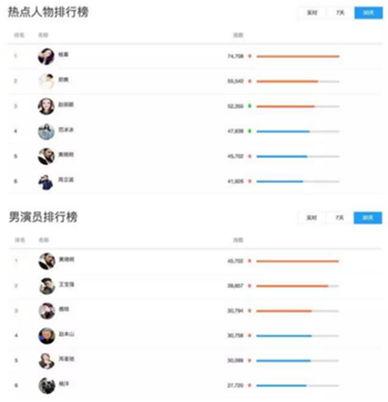 ▼在TBI騰訊瀏覽指數(shù)明星實(shí)時(shí)榜單上你很容易就能找到楊冪、楊洋的名字