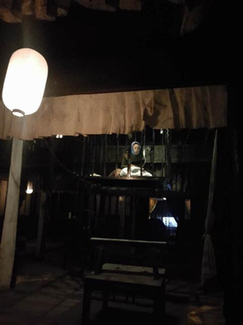 值得一提的是,囚禁女主播的“終極鬼屋”也并非上面提到的5大靈異地點,而是楊宋莊青狐鎮。鬼屋布置非常用心,地獄判官、長發的貞子、剁豬肉的壯漢……還有枯井里伸出來的手,陰森恐怖的氛圍營造的十分到位。而鬼屋中的女主播,則被吊掛在陰暗寒冷的囚籠之中,等待玩咖天團的拯救。