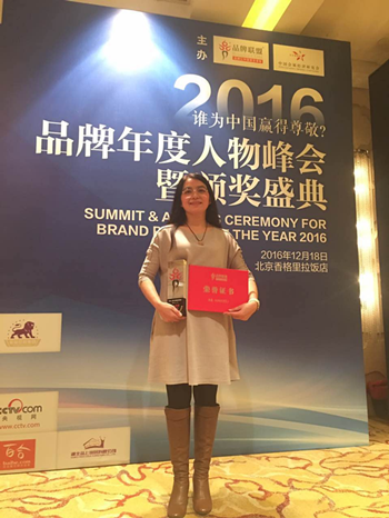 12月18日晚,“2016 中國品牌年度人物頒獎盛典”在北京隆重舉行,政府領導、知名品牌專家、行業協會領導、全球華人領袖代表、中國自主品牌企業家、文娛人士、主流媒體人等近千名嘉賓出席了本次活動。優朋普樂首席品牌官沈虹女士憑借其杰出的品牌整合推廣策略及對品牌做出的貢獻,獲得了“2016中國十大首席品牌官”的稱號。