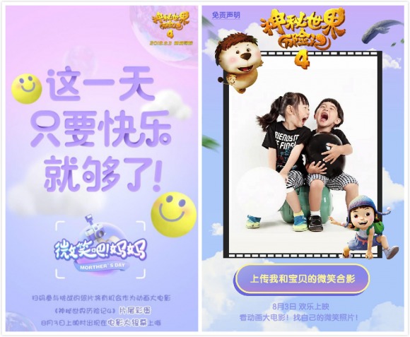 通過“微笑吧,媽媽”線上、線下一系列活動,媽媽網(wǎng)收集了數(shù)萬張微笑照片,但活動卻并未終結(jié)與此。為了將“微笑”理念進行更大范圍的擴散,媽媽網(wǎng)還與即將在8月3日上映的動畫大電影《神秘世界歷險記4》緊密聯(lián)手,共同將曬照活動推向了世界紀錄的大舞臺,只要參與曬照的家庭都有機會成為全新世界紀錄的創(chuàng)造者之一,更有可能登上電影的終極片尾彩蛋!