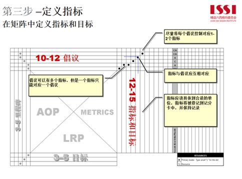 單位和時間表要盡可能詳細如中間所示的METRICS(指標)一定要明確,比如COPQ(質量成本),去年是1%,今年要做到0.8%。