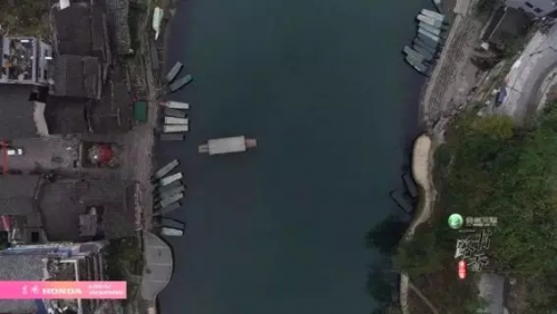 《一路書香2》劇照——俯瞰視角的湘西吊腳樓與渡船