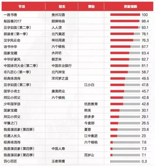 文化綜藝節目對大品牌流量貢獻度