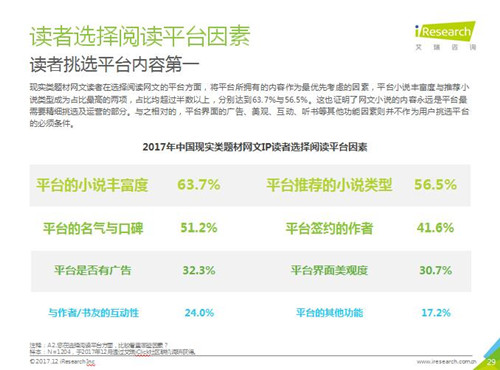 在報(bào)告中,艾瑞除對現(xiàn)實(shí)類題材網(wǎng)文IP的現(xiàn)狀分析外,也對平臺和2017-18年的優(yōu)秀作品案例進(jìn)行了分析。艾瑞統(tǒng)計(jì)表明:讀者將平臺所擁有的內(nèi)容作為最優(yōu)先考慮的因素,這也證明了網(wǎng)文小說的內(nèi)容永遠(yuǎn)是平臺最需要精細(xì)挑選及運(yùn)營的部分。作為當(dāng)前行業(yè)中的兩大領(lǐng)先者,閱文集團(tuán)與網(wǎng)易文學(xué)不僅在現(xiàn)實(shí)類題材網(wǎng)文數(shù)量方面更占優(yōu)勢,還通過不同的策略強(qiáng)化著自己的領(lǐng)先優(yōu)勢。