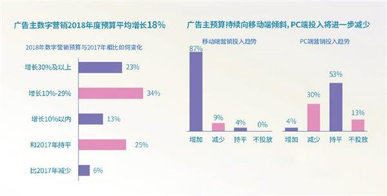 2016年至今,隨著短視頻與直播的迅猛發展,許多品牌商和廣告主看中了這一渠道,將營銷重點放在短視頻與直播上。根據AdMaster的統計數據顯示,廣告主數字營銷2018年度預算平均增長18%,87%的廣告主預算持續向移動端傾斜。51%的調查者認為,在過去一年中短視頻營銷是最值得關注的數字營銷現象。