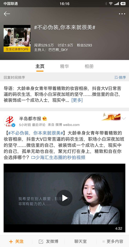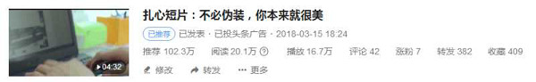 今年315,一部3分40秒的微電影《不必偽裝,你本來就很美》在微博、今日頭條等引發(fā)熱議,并迅速登頂當(dāng)日話題榜,全網(wǎng)總閱讀量超過1000萬。