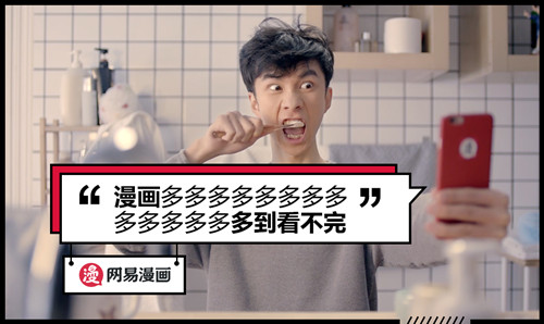 該tvc視頻內容為一個男同學從早到晚、從起床刷牙到洗澡睡覺都一直在看漫畫,看得“停不下來”,表達了網易漫畫“看不完的”特性。