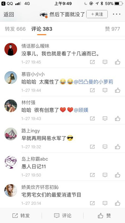 微博上“youtube熱門”“最神奇的視頻”“然后下面就沒了”等大V都對該視頻進行了轉載,評論中對該視頻的反響也十分熱烈。