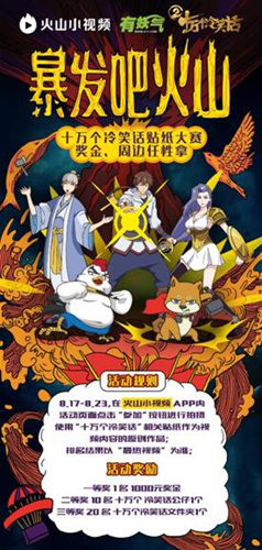 ??這是火山小視頻APP與十萬個冷笑話最近搞出的新花樣。火山小視頻APP聯(lián)合有妖氣,在《十萬個冷笑話2》大電影上線之際,推出了“暴發(fā)吧火山”貼紙大賽活動,發(fā)布使用“十萬個冷笑話”相關(guān)貼紙作為視頻內(nèi)容的原創(chuàng)作品,即有可能獲得獎勵。而這場活動一經(jīng)推出就的確如火山爆發(fā)般激起了年輕人強烈的分享欲望,精彩記錄噴薄而出。