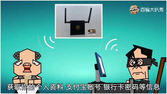 再好比說(shuō)可以偽裝出一個(gè)免費(fèi)的WIFI信號(hào),連上以后,你的瀏覽記錄就會(huì)被監(jiān)聽(tīng),訪問(wèn)網(wǎng)頁(yè)時(shí)候的站點(diǎn)也可以隨時(shí)被修改替換。騙子就會(huì)引導(dǎo)你點(diǎn)擊等釣魚(yú)網(wǎng)站,獲取個(gè)人資料、支付寶賬號(hào)、銀行卡密碼等信息。