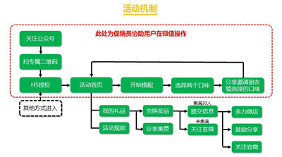 除了曝光品牌,所有的宣傳最終目的都是銷售。 Mission認為應該把這次活動定調為線上機制活動,除了幫助知名度的創造,還能幫線下拉動人潮,最終促進購買,同時線下也幫助線上拉進TA并進行trial rate的提升。那么如何將線上H5導流到實體通路的銷售渠道上呢?這就不得不說到社群的洞察與運用。“其實社交是互相的麻煩與幫忙的過程,所以我們活動機制設計的關鍵是如何讓消費者認可,讓他很樂于成為推薦者,甚至主動分享給他的好朋友,這樣活動就可以滾動起來。”Mission如是說,”這個線上結合線下而不透過廣告投放的微信H5 我稱之為2.0版。”