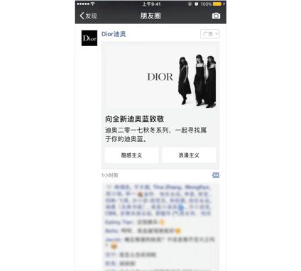 內部人士透露,第一輪體驗微信朋友圈選擇式卡片廣告的廣告主不僅Dior一家,還有麥當勞、奔馳等國際大牌。新加入的可選擇按鈕,為廣告主提供了一個更多元的選擇式創意展示空間,讓用戶的交互體驗得到升級。