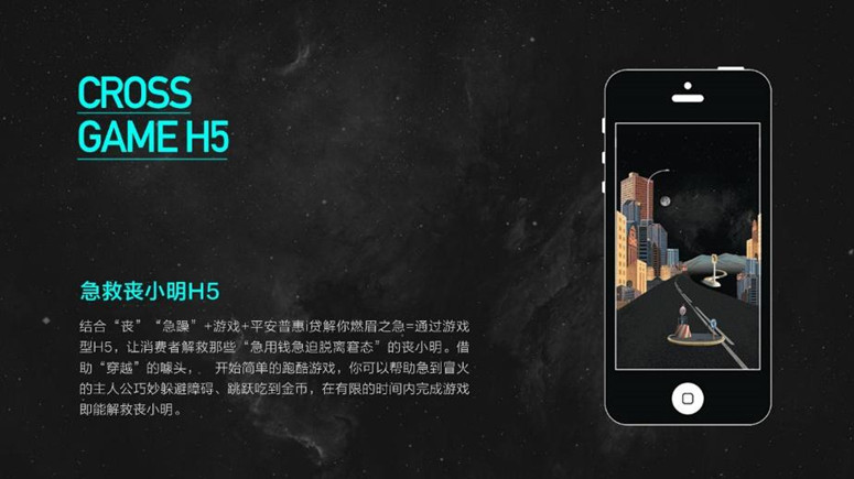 通過對市場及消費者洞察,不難發(fā)現(xiàn)當(dāng)下社會喪文化入侵,讓人們開始關(guān)注到當(dāng)下社會里年輕人面臨的巨大壓力。而“喪”“焦慮感”“急躁”是最核心的情緒情感體現(xiàn)。這時,全民王者榮耀更體現(xiàn)了游戲是現(xiàn)代年輕人的一種釋放方式。結(jié)合“喪”“急躁”+游戲+平安普惠i貸解你燃眉之急=通過游戲型H5,讓消費者解救那些“急用錢急迫脫離窘態(tài)”的喪小明一也就是消費者自己,并將產(chǎn)品救急的概念傳輸給消費者。