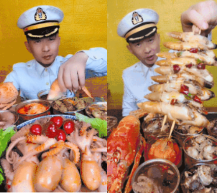 ??目前,老船長的帶貨日常便是經常跑到海邊直播,以及拍攝海鮮美食的情景劇和段子。甚至吃播賣貨也是一個非常有效的帶貨方式,往往美食類用戶會被博主的風格感染作出“種草”到“拔草”的沖動性消費。例如,老船長在吃播時經常與老鐵這樣互動:“滿腔熱血為誰拼?只為老鐵們的小紅心。老鐵們,來個82年的大龍蝦,這種感覺真的很到胃。”久而久之,白色海軍制服與“土味”口播金句的結合,形成了老船長最為鮮明的賬號人設,繼而逐漸演變成為IP效益。“天南地北,八爪魚的大長腿最美味,老鐵你想吃嗎?”在老船長眼里,無論是一只大龍蝦背后的愛情故事,還是十個蟶子肉串成的穿云箭,甚至是牛奶與生蠔最配的CP組合,都能吸引海鮮美食愛好者一邊欲罷不能地做出購買轉化行為,一邊又深刻體會到“一入‘蠔’門深似海,從此‘淡定’是路人。”