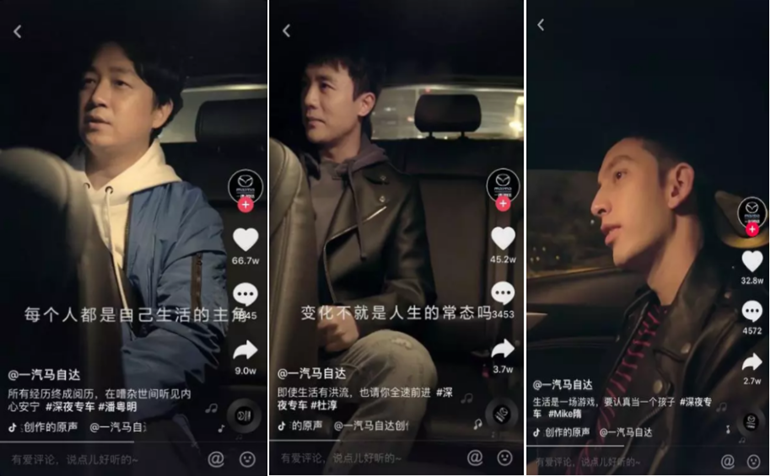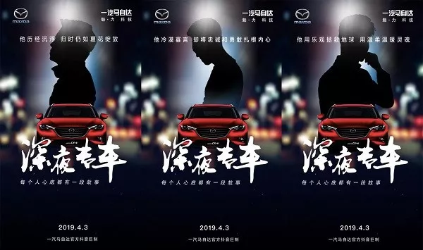 《深夜專車》近期在抖音上線,這是抖音汽車藍V首個豎屏IP短劇,也是一汽馬自達官方為抖音自家藍v賬號運營打造的全新短視頻明星故事類欄目。在這檔節目中,一汽馬自達特別請來潘粵明、杜淳、隋凱三位風格各異的名人,通過豎屏短視頻內容傳達了三種全然不同的人生態度,表達出馬自達“走自己的路”的品牌主張。
