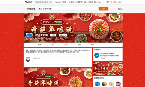 創(chuàng)意營(yíng)銷(xiāo)的核心切入是產(chǎn)品,在沃爾瑪這次年貨節(jié)營(yíng)銷(xiāo)中,沃爾瑪-京東到家抓住消費(fèi)者的實(shí)際生活需求,使用了奇葩的切入點(diǎn)來(lái)說(shuō)年味,在微博發(fā)起了一場(chǎng)#奇葩年味說(shuō)#話題,網(wǎng)友可以參與“說(shuō)說(shuō)你吃過(guò)最沙雕的年夜菜”話題互動(dòng),同時(shí)也可以上微博搜索關(guān)鍵詞“新年”“沃爾瑪”,加入到主話題討論中來(lái)。