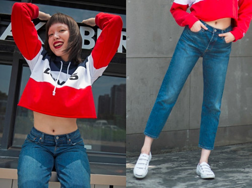高腰褲中融入慵懶的男友風(fēng)設(shè)計(jì),從視覺上提升腰線、拉長腿型,身材嬌小的野蠻女友們最能在這款牛仔褲中穿出不一樣的格調(diào)。