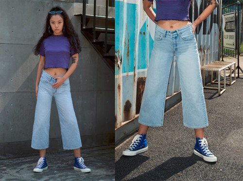高腰闊腿設(shè)計(jì)在修飾腿型的同時(shí)更表現(xiàn)你的腰臀美,搭配修身短款露臍裝,Wide Leg摩登高腰闊腿牛仔褲將摩登女孩兒們的張揚(yáng)個(gè)性表現(xiàn)得恰到好處。