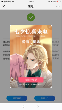 早在今年7月份,來電科技便以《夢間集天鵝座》游戲中的6位主角形象定制了上萬枚“愛情鑰匙”共享充電寶,掃描充電寶上的二維碼即可聽取來自游戲CV的甜蜜情話,預約公測并獲取游戲大禮包。利用來電科技自身的線下用戶資源優勢,彌補完美世界的線下導流短板,成為完美世界的線下端口,為完美世界實現新一輪的用戶增長。除此之外,來電科技還運用其強大的媒介優勢,在全國上百個城市的數千臺大屏共享充電設備及小程序、官方自媒體矩陣同步發聲,為此次線下活動導流,活動未開始即吸引了大量關注。此次整合營銷活動,一方面強化了來電品牌年輕化、會玩的標簽特質,一方面為合作商家提供了活動的主題策劃及內容輸出,一方面為合作品牌完美世界游戲《夢見集天鵝座》提供了宣傳曝光、營銷落地的機會。這是來電在品牌跨界、內容輸出和場景定制等能力的又一次證明,來電與商家、合作品牌實現三贏。