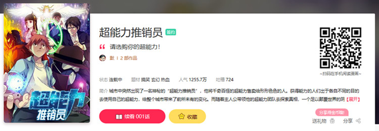 在精品策略的主導下,網易漫畫的平臺上已經聚集了一大批如《超能力推銷員》這樣的精品原創漫畫,截至目前,網易漫畫的在線漫畫版權作品數量已突破2萬,包括超過1000本境外漫畫,以及高達600余位獨家簽約的國內外漫畫家。在未來,網易漫畫還將繼續深耕精品內容,并以此為基礎,培育與打造原創IP,為市場提供更多優質選擇。
