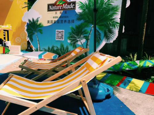 此次活動,Nature Made天維美依舊延續加州海灘元素,利用沙灘、躺椅、椰子樹等道具,真實再現了陽光海灘之景,成為網易園區一道獨特的風景線。