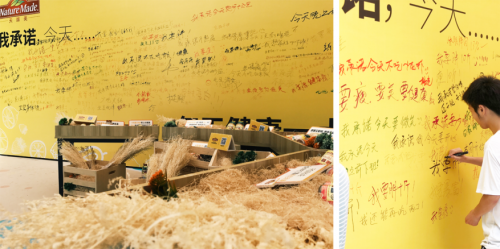 本次活動,Nature Made天維美以“每天健康一點點”為主題,鼓勵用戶寫下自己的健康承諾,比如,今天不吃麻辣燙、今天要走1萬步、今天睡滿8小時等。活動第一天,七米長的“健康承諾墻”便已被寫滿,可見大家參與熱情之高漲。