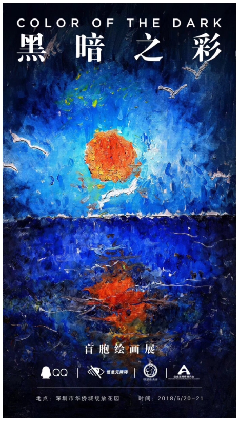 就在前兩天,騰訊QQ聯合信息無障礙研究會、深圳市盲人協會、深圳市殘疾人聯合會等公益組織舉辦的“黑暗之彩”盲胞繪畫展在深圳開展。眾多盲胞畫作讓觀眾置身藝術的海洋,觀看盲胞繪畫紀錄片、蒙眼感受作品及盲道讓觀眾體驗視障群體生活,通過這樣的方式吸引公眾關注視障群體,傾聽他們背后的故事,用一場視覺盛宴讓觀眾重新認知視障人士,走進他們的心靈、感受“多彩”世界。
