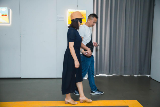 公益,不是你想做什么,而是你能做什么。為了讓觀眾深切感受視障群體生活,進入畫展后,工作人員首先會為參展人戴上眼罩,將其代入視障人士角度,并全程由工作人員引領,感受盲胞畫作、體驗盲道。很多觀眾帶著好奇的心態戴上眼罩,但卻發現很不習慣甚至有些恐慌,平時用幾分鐘就能欣賞完的畫作現在則需要幾倍的時間來“看”,看不到周圍的物體一步都走不動,在盲道上一點一點“探路”…主辦方希望通過這種方式,讓觀眾親身體驗視障人士生活,理解他們的難處,喚起大家的愛心和關注。
