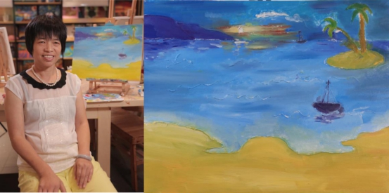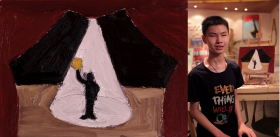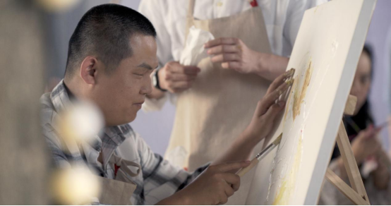 如此精美的作品,這些視障畫家是怎么完成的呢?現場很多人抱著這樣的震驚和疑問。通過盲胞繪畫紀錄片,他們看到了這些“特殊畫家”的創作過程。原來,他們的繪畫方式與視障人士閱讀的方式相同,通過觸摸畫布和顏料的紋理作畫,從大致的輪廓到每個小細節都需要憑借超長的耐心去“觸摸”完成。