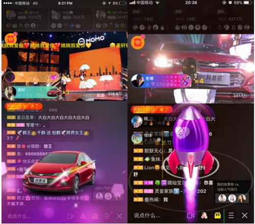 ??在當晚的直播中,陌陌為獨家冠名贊助商雪佛蘭專門制作了科魯茲跑車虛擬禮物,用戶可以通過打賞這款禮物為喜歡的播主增加人氣。與此同時,雪佛蘭科魯茲汽車還作為表演道具進入到了觀眾的視野,一度成為場上最大的明星。在網(wǎng)友最為關注的送紅包環(huán)節(jié),雪佛蘭送出了888888陌幣以及汽車一年使用權,這種超級福利被廣大網(wǎng)友所銘記。而在線上,陌陌為雪佛蘭打造了開屏廣告、首頁Banner推薦位、直播間廣告輪播等多種權益。