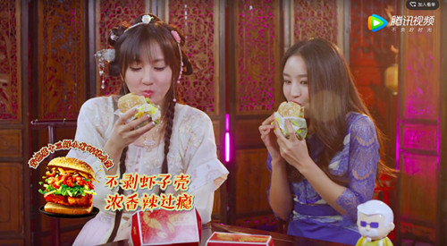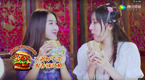 打開西瓜視頻,每日循環播放的《一郭匯》slogan“去聽相聲覺得貴,不如來看一郭匯”,為節目預熱增添了不少趣味和話題性。而肯德基的內容植入效果也恰到好處,在第二期節目中,《一郭匯》為肯德基量身定做了一期主題為“飯局”的節目,將古代飯局與現代快餐美食融合,從“貴妃醉酒”到手中的“小龍蝦烤雞堡”,在談論飯局之間巧妙植入新品,既體現節目的內容價值,又突出了肯德基烤雞堡“不剝蝦子殼 濃香辣過癮”的特點,廣告植入自然親切。