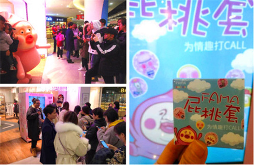 12月24號下午,一只丑萌的屁桃君現身上海世博源,帶著FAMA的問候和禮品,和前來過圣誕的朋友們度過了短暫的萌系時光,也將FAMA屁桃套的推廣活動推向了高潮。