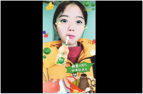 對著屏幕只要做出張口的動作,就來一瓶伊利暢意100%乳酸菌,好像視頻能夠知道你飽餐一頓之后,要促進一下消化;