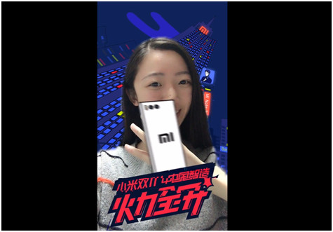背景替換成了高樓大廈,身處在樓下的你,只需要張開手就能變出一臺小米手機。這是小米在小咖秀上,造勢雙11大促的全新玩法;