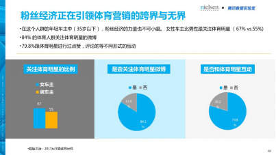 今年4月張繼科在上海車展現(xiàn)身,為愛康尼克站臺(tái),受到大量粉絲圍觀及線上聲援,當(dāng)天社交媒體上的相關(guān)聲量超過14700條,類似這樣體育與娛樂聯(lián)合的營(yíng)銷,在人群覆蓋與情感共鳴上能達(dá)到很好的效果,是商家打造大事件營(yíng)銷的有利法寶。以超級(jí)企鵝籃球名人賽為例,賽事將攜手文體明星,多重粉絲關(guān)注疊加推高賽事熱度。超級(jí)企鵝籃球名人賽除了在線下吸引到近13000名觀眾到場(chǎng)以外,在線上賽事的總播放量也達(dá)到1.1億,值得關(guān)注的是,女性觀眾的占比超過30%,遠(yuǎn)高于其他傳統(tǒng)賽事。體育+娛樂的跨界不僅將體育人群從單純的體育愛好者擴(kuò)展到明星粉絲層面,更有效觸達(dá)女性用戶,而對(duì)于品牌來說也可輕松撬動(dòng)粉絲經(jīng)濟(jì),帶來豐厚收益。