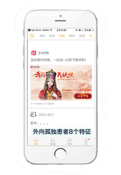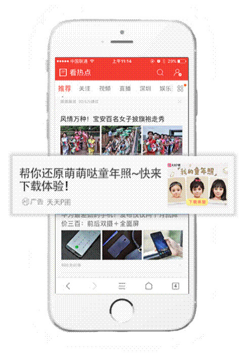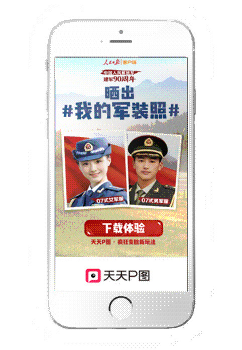 ??如果說QQ廣告給天天P圖提供了優質的年輕用戶,那么騰訊廣告聯盟則是滿足了它的另一個目標:擴大用戶圈。八一建軍節,天天P圖以“曬出我的軍裝照”引爆了軍裝潮流。除了QQ廣告,天天P圖在騰訊廣告聯盟各式各樣App的開屏和插屏中,也都投放了“軍裝照”的廣告畫面。也正是因為這次“找對了場景”的節日營銷,天天P圖不再僅僅是年輕女孩子的專屬,不少中年人就是在這一契機下被轉化為它的用戶。